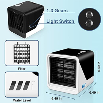 The portable air conditioner has portable design,small size.The mini air conditioner is only 7.48*7.48*7.67 inches,so itโ€™s very convenient.The best choice for camping and you can easily carry it out.